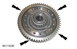 Inspect the differential assembly and the ring gear for damage and install new, if necessary.