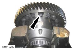 2. Install the remaining 12 new differential ring gear bolts and tighten in 2 stages.