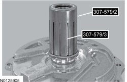 Compress the low/reverse piston return spring, install the snap ring and remove 307-584 /2 and 307-588 /3.