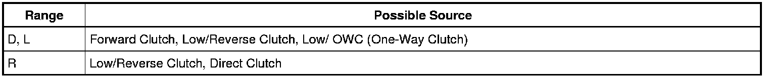 In each of the following ranges Drive, Low and Reverse, press the accelerator pedal to the floor and hold it just long enough to let the engine get to WOT (Wide Open Throttle). While conducting this test, do not hold the throttle open for more than 5 seconds each time.