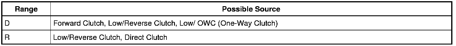 In each of the following ranges Drive, Low and Reverse, press the accelerator pedal to the floor and hold it just long enough to let the engine get to WOT (Wide Open Throttle). While conducting this test, do not hold the throttle open for more than 5 seconds each time.