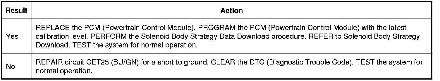 4. Measure the resistance of circuit CET25 (BU/GN) from the transaxle vehicle harness C168-15 to the PCM (Powertrain Control Module) C175T-50.