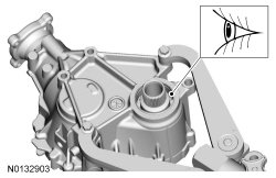 - Position the PTU (Power Transfer Unit) output flange upward and tilt the PTU (Power Transfer Unit) approximately 30 degrees toward the LH (Left Hand) seal bore to allow the fluid to drain from the PTU (Power Transfer Unit) input shaft opening.