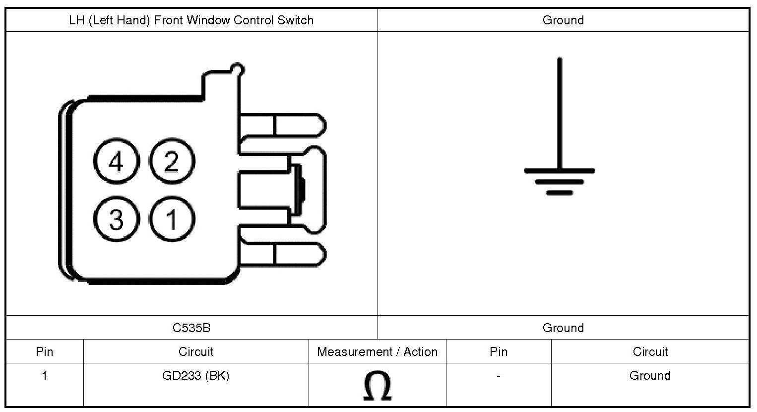 1. CHECK THE LH (Left Hand) FRONT WINDOW CONTROL SWITCH GROUND CIRCUIT FOR AN OPEN