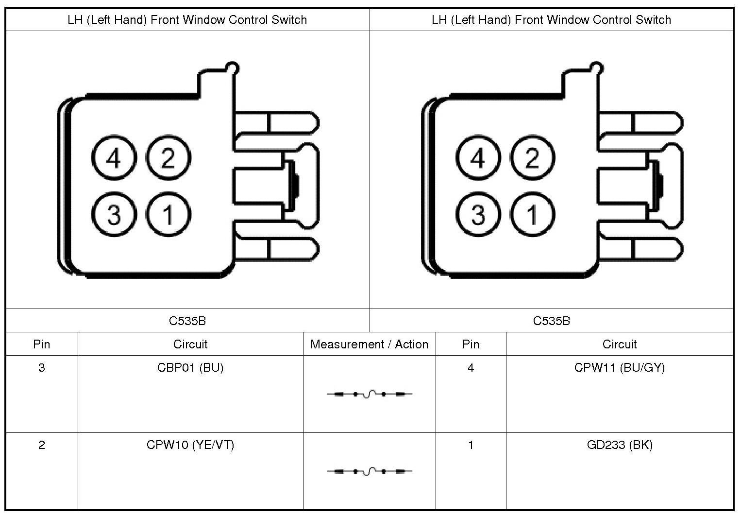 2. Disconnect: LH (Left Hand) Front Window Control Switch C535B.