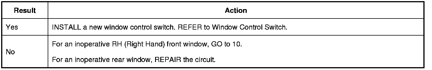 11. CHECK THE RH (Right Hand) FRONT WINDOW CONTROL SWITCH OPERATION