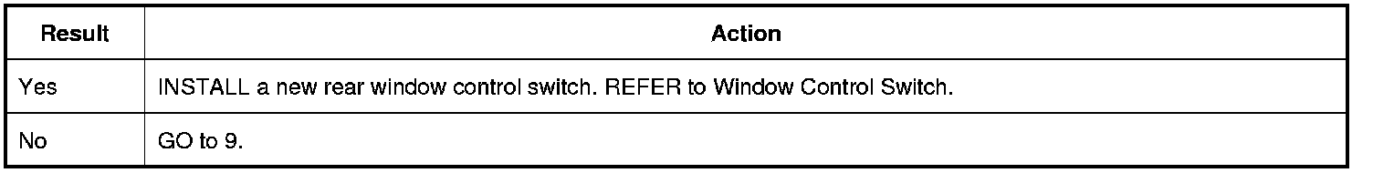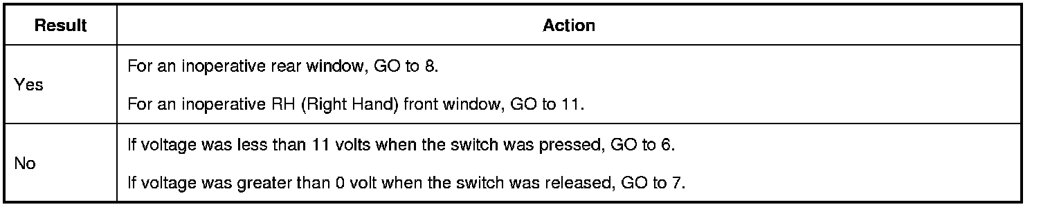 3. For RH (Right Hand) rear window, while pressing and releasing the LH (Left Hand) front window control switch, measure: