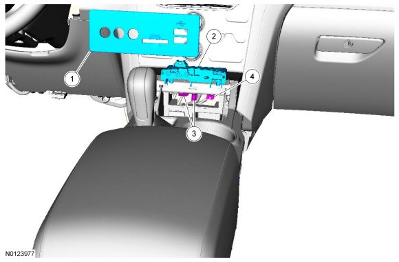 1. Open the floor console finish panel bin door.