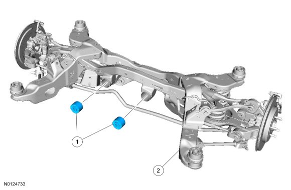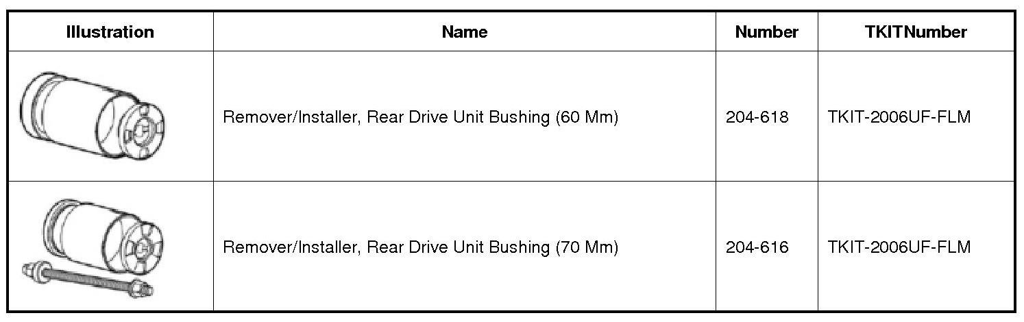 NOTE: When installing the RDU (Rear Drive Unit) bushing, RDU (Rear Drive Unit)204-618 /2 will fall away as the RDU (Rear Drive Unit) bushing is installed into the subframe. The RDU (Rear Drive Unit)204-616 /2 does not control the depth of the bushing. The RDU (Rear Drive Unit) bushing is fully seated when the RDU (Rear Drive Unit)204-616 /2 falls away from the subframe, do not continue to tighten the RDU (Rear Drive Unit)204-616.