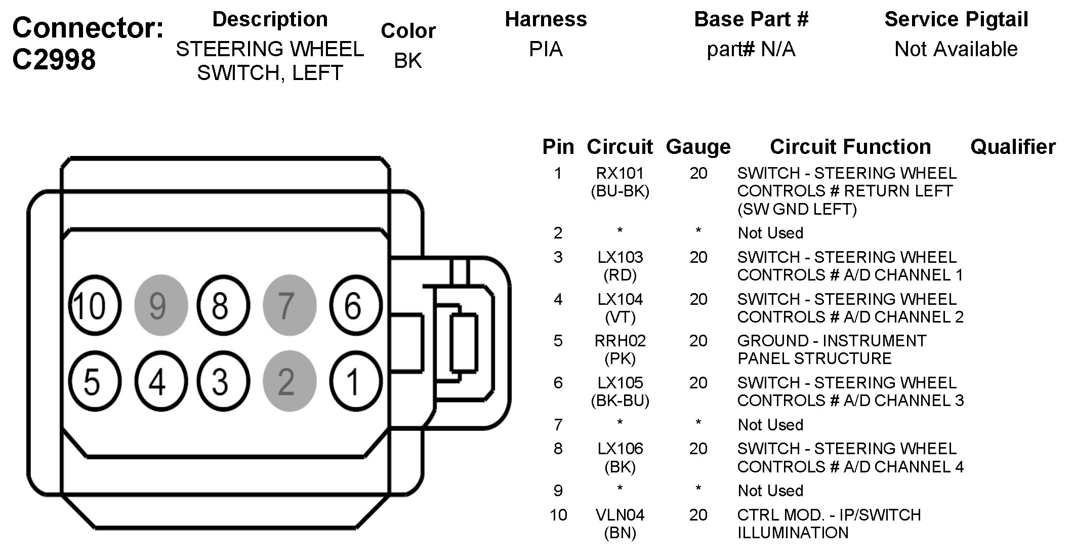 C2998 Steering Wheel Switch, Left