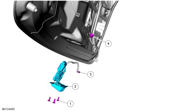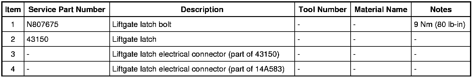 Power liftgate latch shown, manual liftgate latch similar.