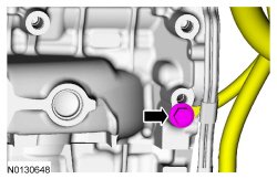 - Install the drain plug and tighten to 27 Nm (20 lb-ft).