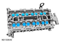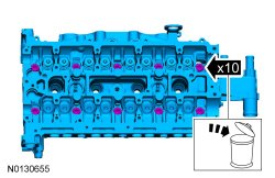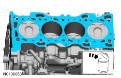 NOTICE: During engine repair procedures, cleanliness is extremely important. Any foreign material, including any material created while cleaning gasket surfaces, that enters the oil passages, coolant passages or the oil pan can cause engine failure.