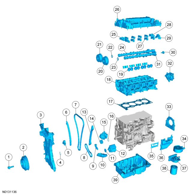 1. NOTICE: During engine repair procedures, cleanliness is extremely important. All parts must be thoroughly cleaned and any foreign material, including any material created while cleaning gasket surfaces, that enters the oil passages, coolant passages or the oil pan, can cause engine failure.