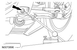 Measure the distance between the flat level surface and the center of the lower control arm-to-subframe bolt (measurement 2).
