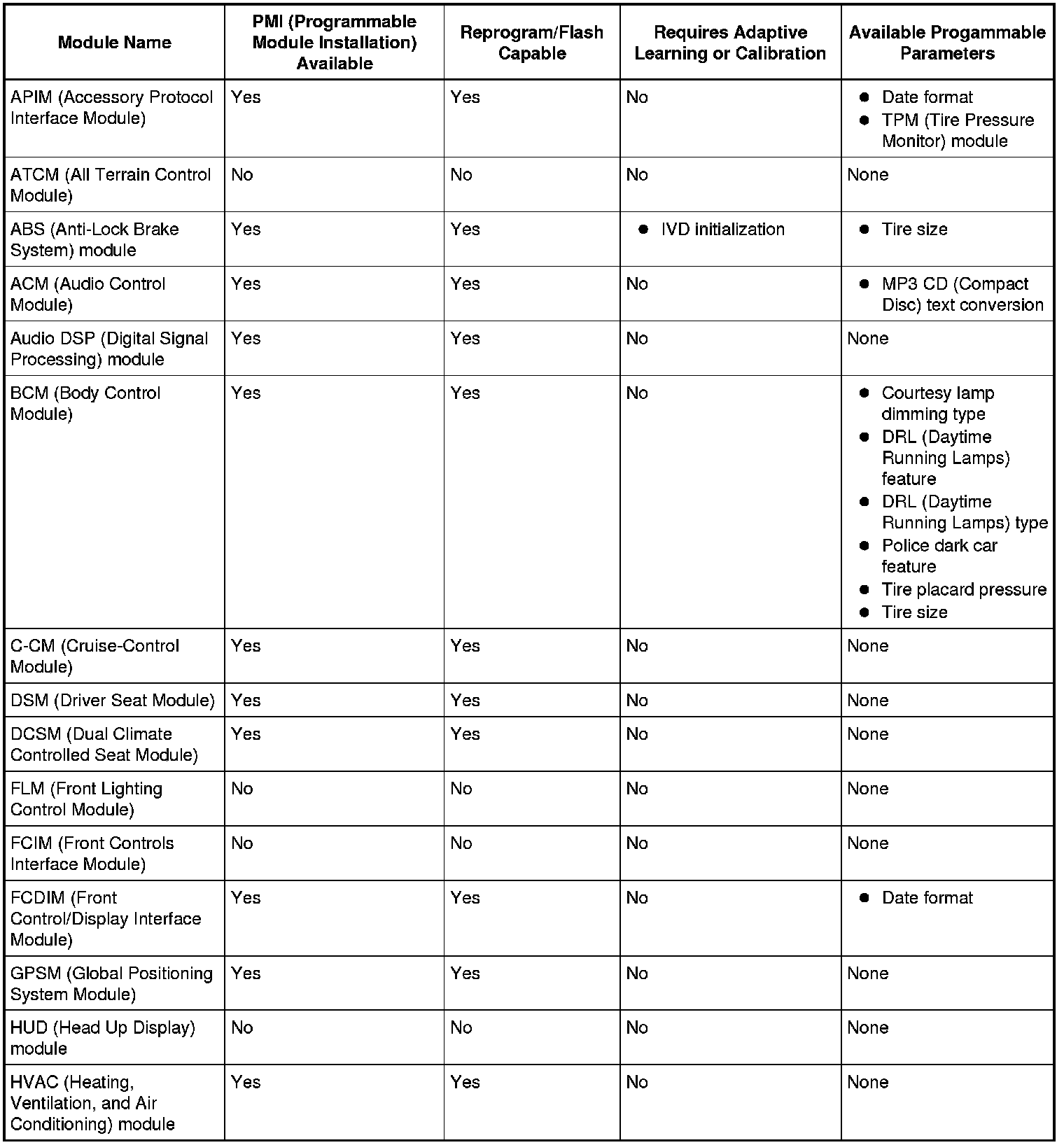 Programmable parameters are customer preference items that may be modified by the dealer via the scan tool or in some cases, modified by the customer following a procedure listed in the Owner's Literature. While many configuration options may exist for a module, only a few of these options are programmable parameters. (Some parameters must be changed in multiple modules at the same time.)