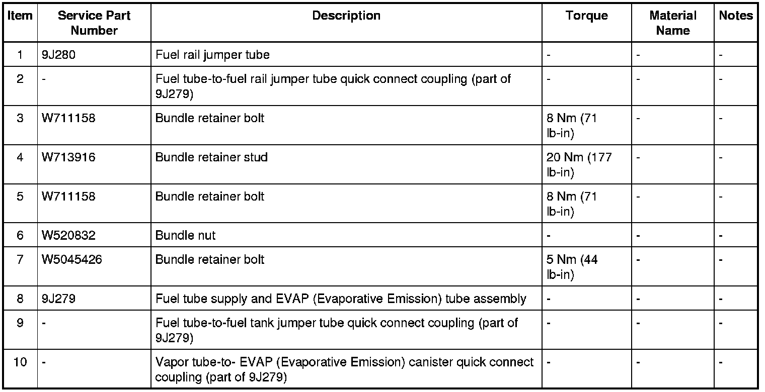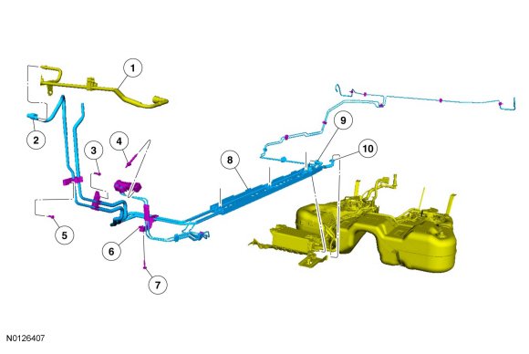 10. Remove the fuel tube supply and EVAP (Evaporative Emission) tube assembly.