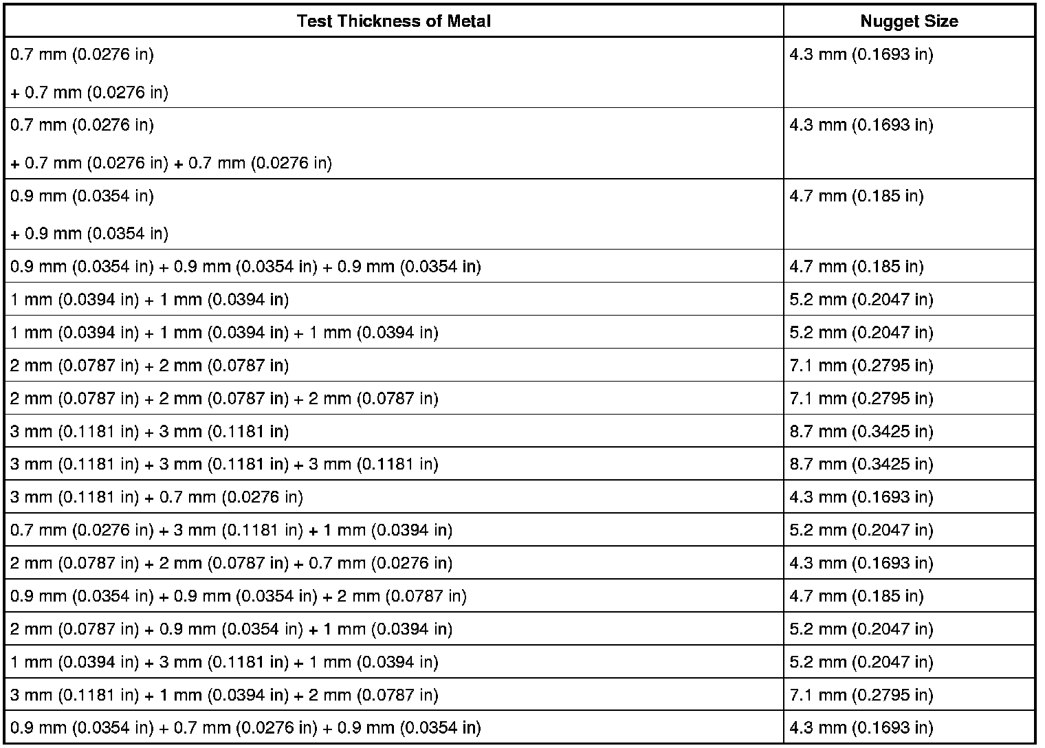 d For DP 980 and Boron use MIG (Metal Inert Gas) plug welding only, no stitch welding.