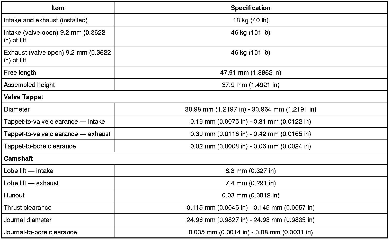 Torque Specifications