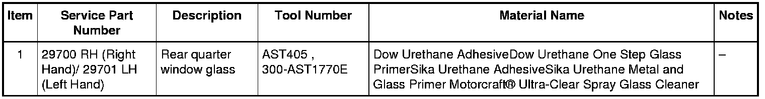 NOTICE: Before positioning the rear quarter glass, open vehicle windows to prevent the air pressure of closing doors from affecting the urethane adhesive bond.