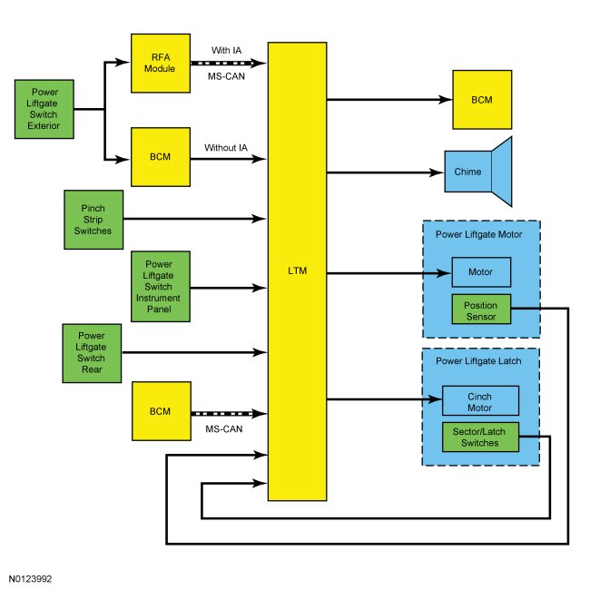- The LTM (Liftgate/Trunk Module) checks the gear selector lever position and vehicle speed status from the MS-CAN (Medium Speed Controller Area Network).