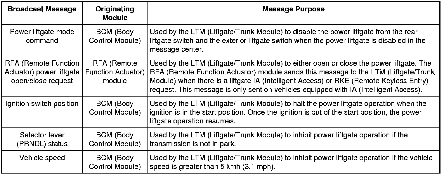 Module Network Input Messages - LTM (Liftgate/Trunk Module)