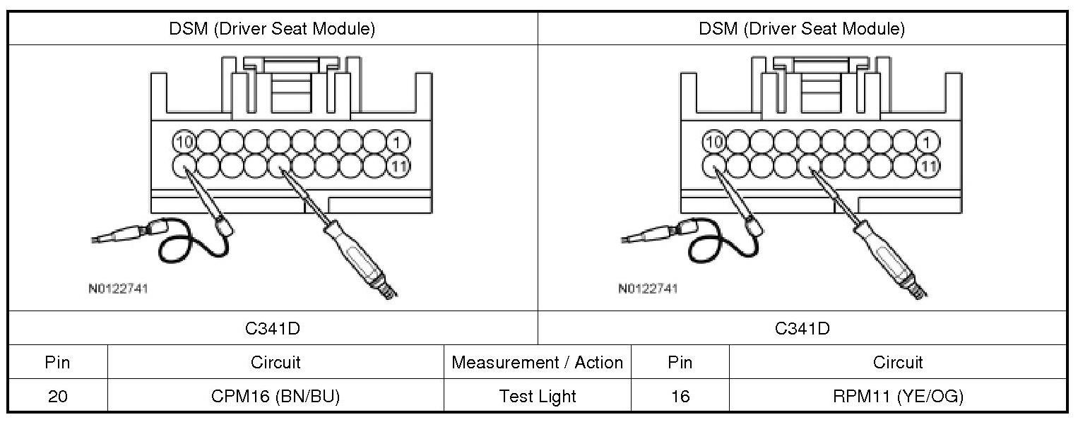 2. Disconnect: DSM (Driver Seat Module) C341D.