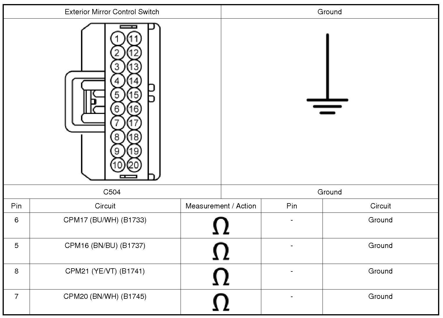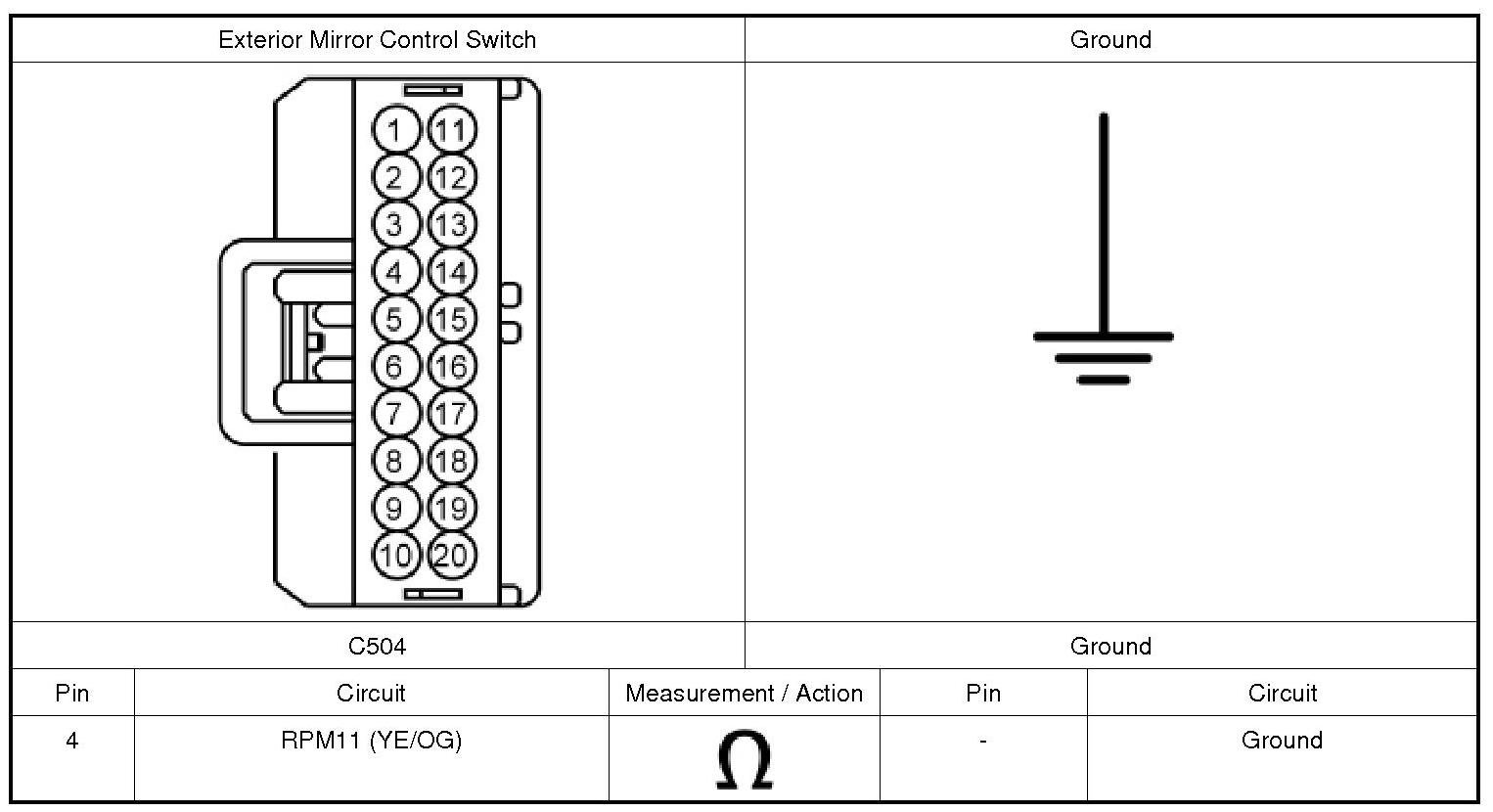20. CHECK THE RH (Right Hand) EXTERIOR MIRROR CONTROL OUTPUT CIRCUITS FOR A SHORT TO GROUND