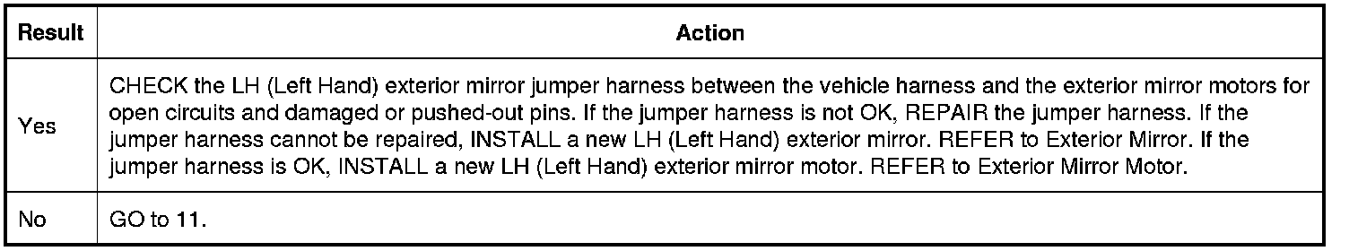 11. CHECK THE LH (Left Hand) EXTERIOR MIRROR CONTROL OUTPUT CIRCUITS FOR AN OPEN