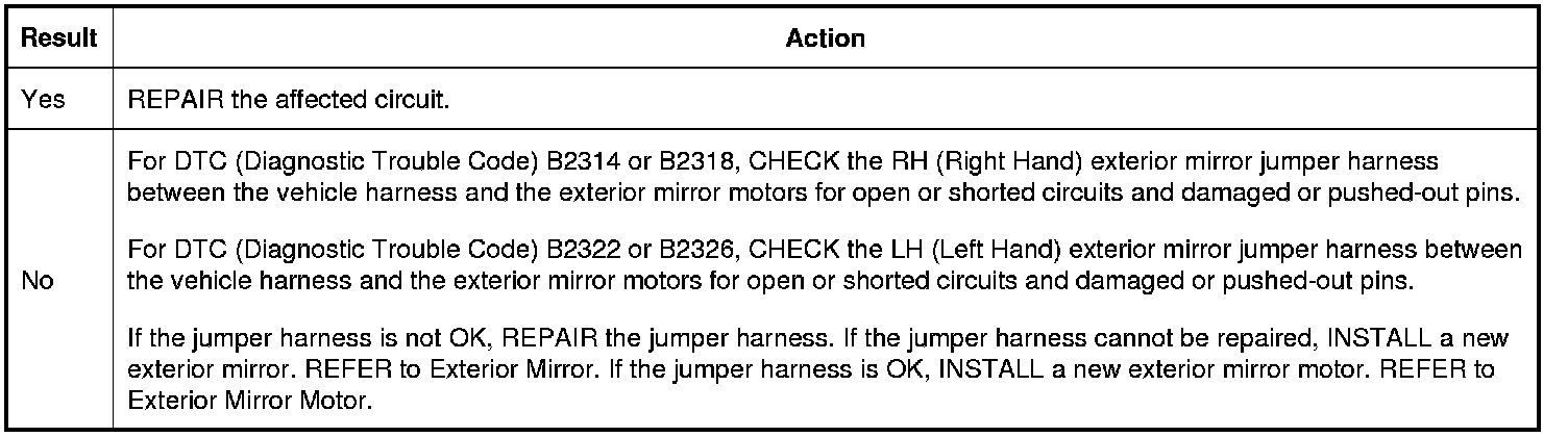 19. CHECK THE RH (Right Hand) EXTERIOR MIRROR CONTROL OUTPUT CIRCUITS FOR A SHORT TO VOLTAGE
