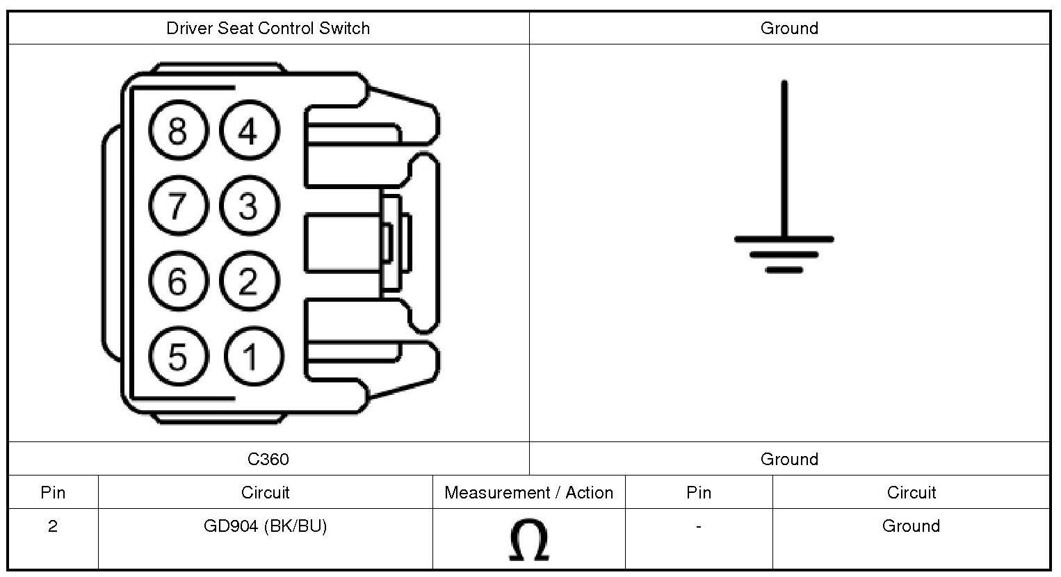 3. Connect: Driver Seat Control Switch C360.