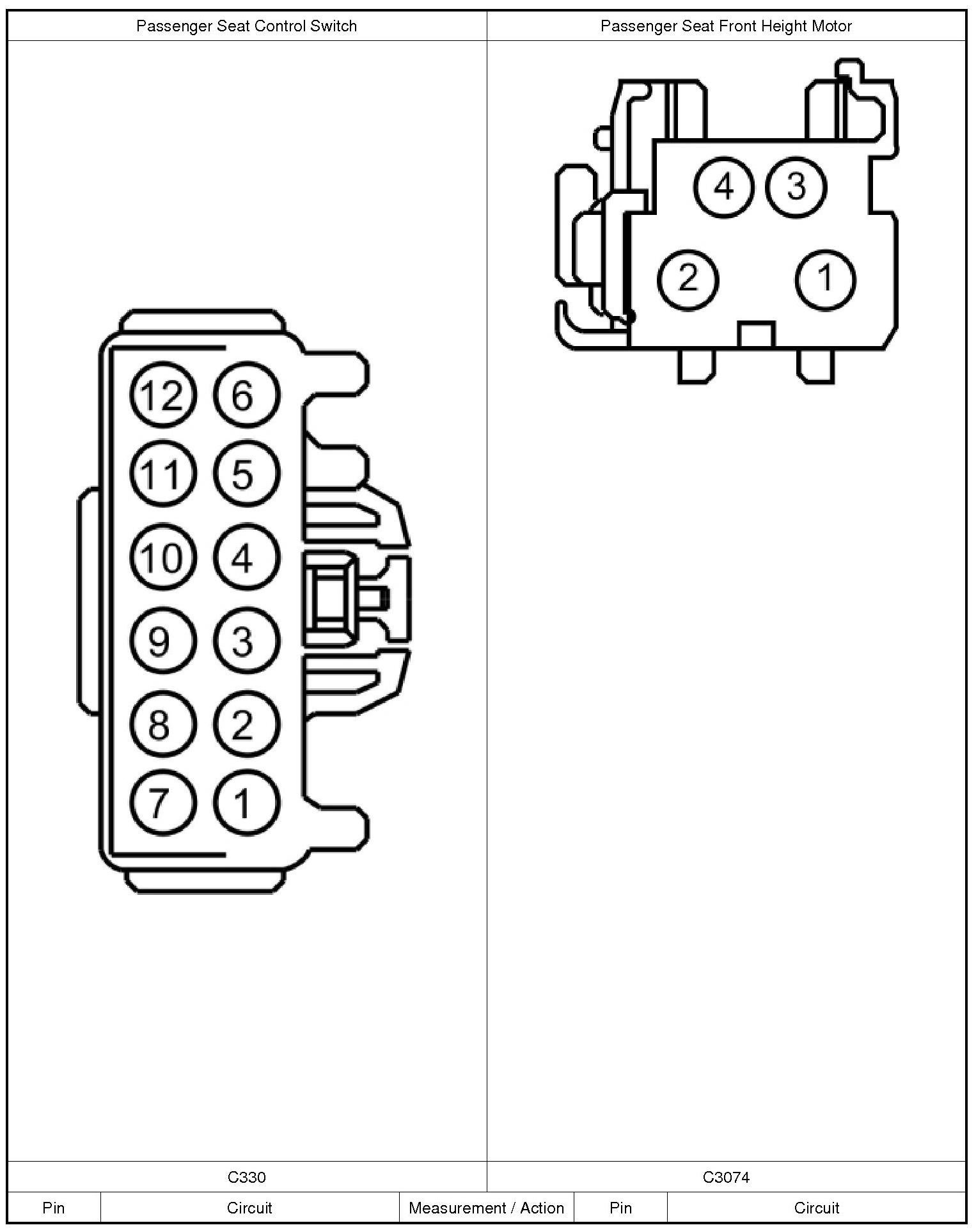 1. Disconnect: Passenger Seat Control Switch C330.