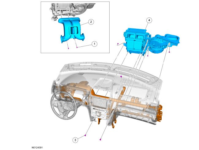 NOTE: If a heater core leak is suspected, the heater core must be pressure leak tested before it is removed from the vehicle. REFER to Heater Core Component Test Component Test.