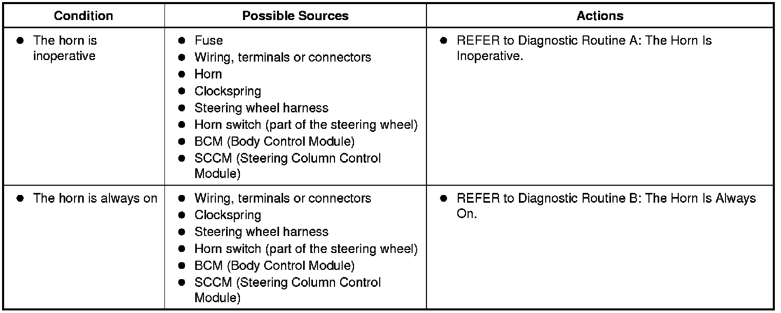 Symptom Chart: Horn