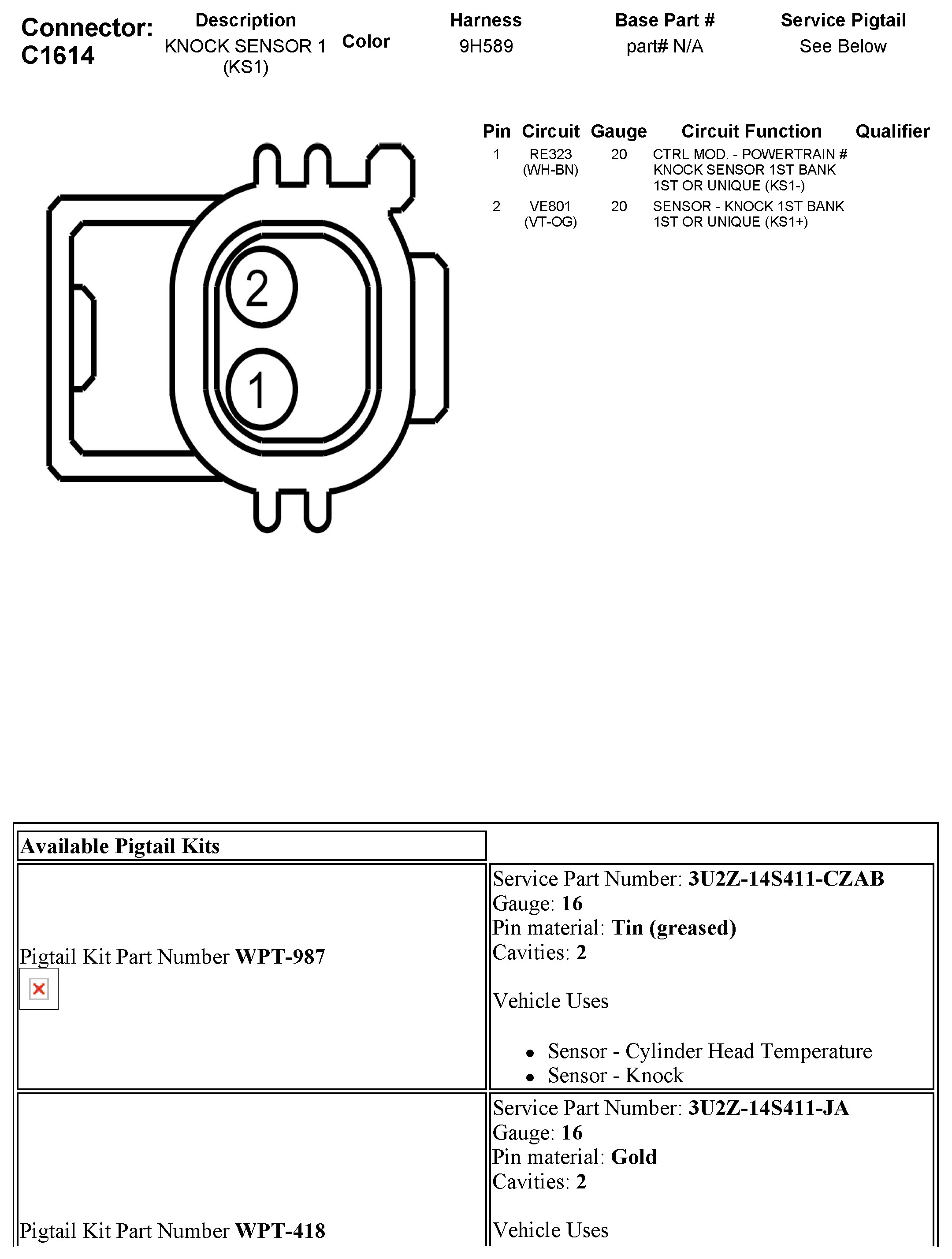 C1614 Knock Sensor 1 (KS1)