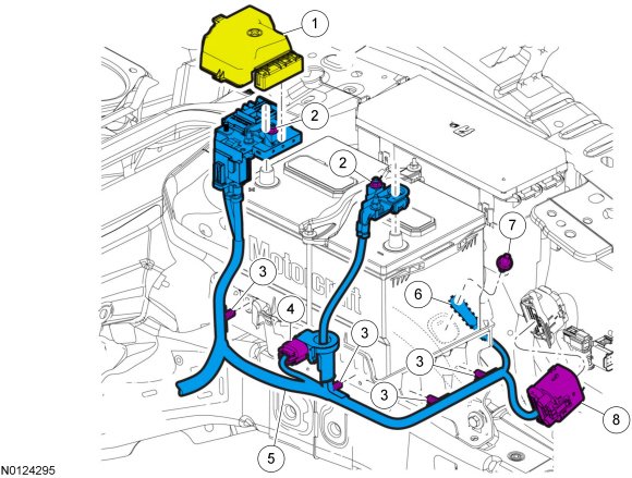 Battery Cable Connections to Starter and PSCM (Power Steering Control Module)