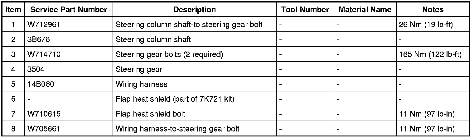 19. Remove and discard the 2 steering gear bolts and remove the steering gear from the RH (Right Hand) side of the vehicle.