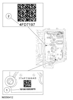 2. Compare the solenoid body identification and strategy (if available) to the solenoid body service tag or the replacement solenoid body tag located on top of the transaxle case.