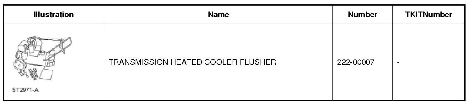 NOTE: Transmission fluid cooler backflushing will be carried out using the 222-00007. Follow the manufacturer's instructions included with the machine. Test the equipment to make sure that a vigorous fluid flow is present before proceeding.