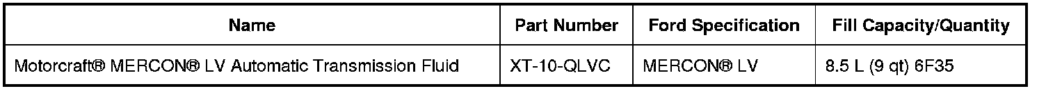 1. NOTICE: Use Motorcraft(R) MERCON(R) LV Automatic Transmission Fluid for this transmission. Do not use any supplemental automatic transmission fluid additives or cleaning agents. The use of these products could cause internal transmission components to fail, which will affect the operation of the transmission.
