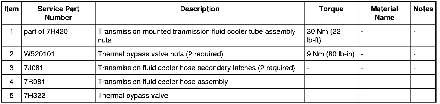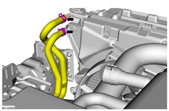 7. Using 307-569 , disconnect the transmission return and inlet cooler hoses from the transmission fluid thermal bypass valve.