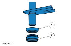 5. Inspect the transmission mounted transmission fluid cooler tube backing rings and seals for damage and install new backing rings or seals if necessary. Lubricate the transmission mounted transmission fluid cooler tube seals with clean Motorcraft(R) MERCON(R) LV Automatic Transmission Fluid and install the backing rings and seals on the transmission mounted transmission fluid cooler tubes.