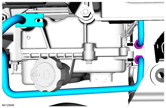 10. Using 307-569 , disconnect the transmission return and inlet cooler hoses from the transmission fluid thermal bypass valve.