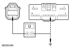 - Measure the resistance between RH PRB (Power Running Board) motor C3186-6, circuit RPR47 (BU/GN), harness side and PRB (Power Running Board) module C3313B-14, circuit RPR47 (BU/GN), harness side.
