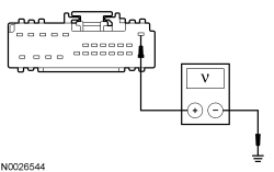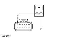 - Measure the voltage between DSM (Driver Seat Module) C341A-1, circuit CBX05 (VT/RD), harness side and ground.