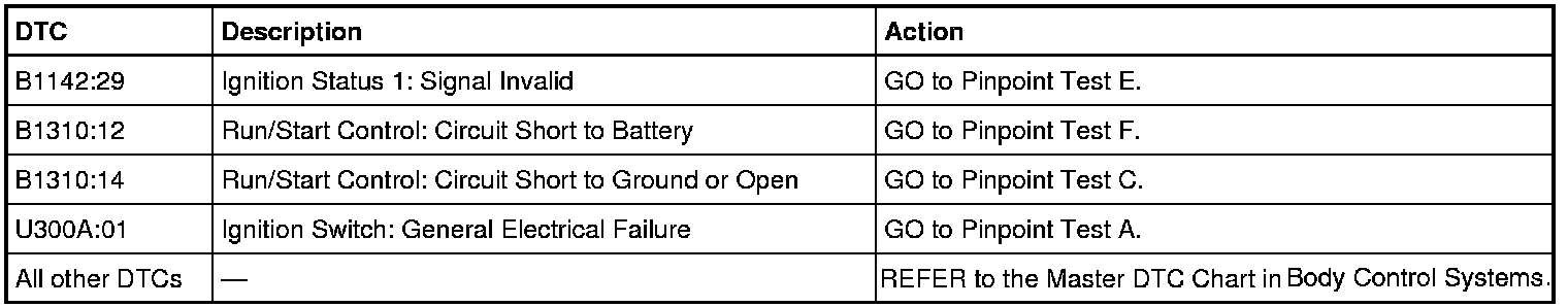 Body Control Module (BCM) DTC Chart
