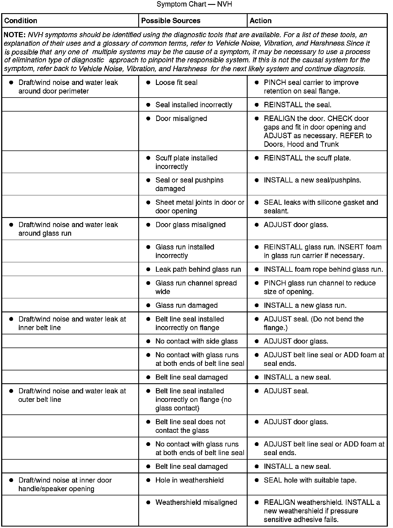 Symptom Chart - NVH