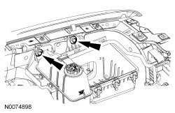 4. Remove the 2 bolts and position the coolant expansion tank/lower ACL (Air Cleaner) housing assembly aside.