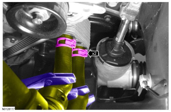 2. Connect the 2 coolant hoses to the engine oil cooler and remove the hose clamp pliers.