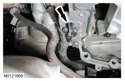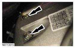 Tighten the 2 LH bellhousing-to-engine bolts to 48 Nm (35 lb-ft).